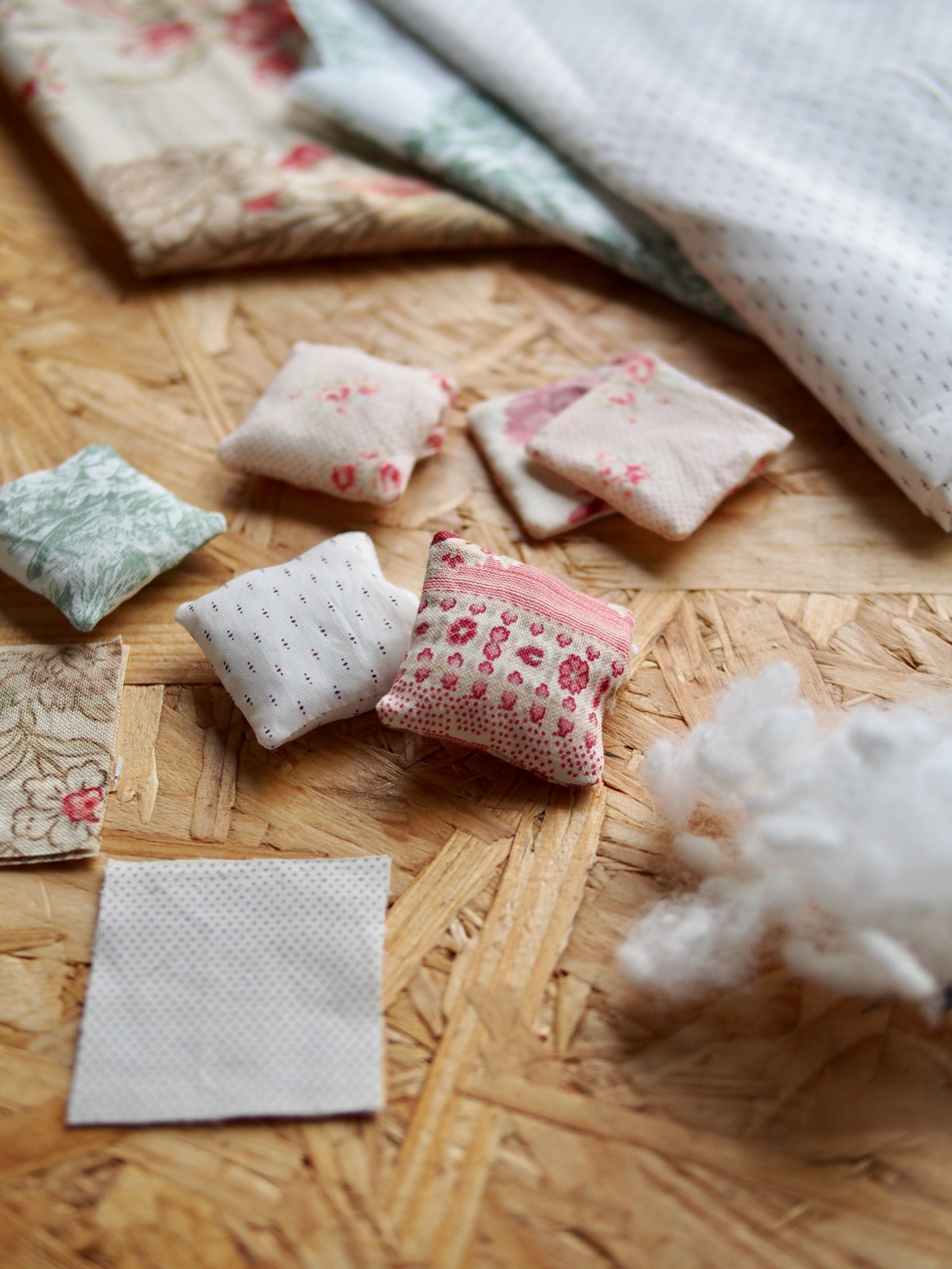 des coussins cousus dans des cotons anciens chinés chez Félicité et Perpétue…