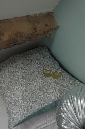 …tout en haut de la maison Betsy gris, tissu teint, passepoil doré. Motif Flex largement inspiré de la collection Bpt… *** juste douillet !***