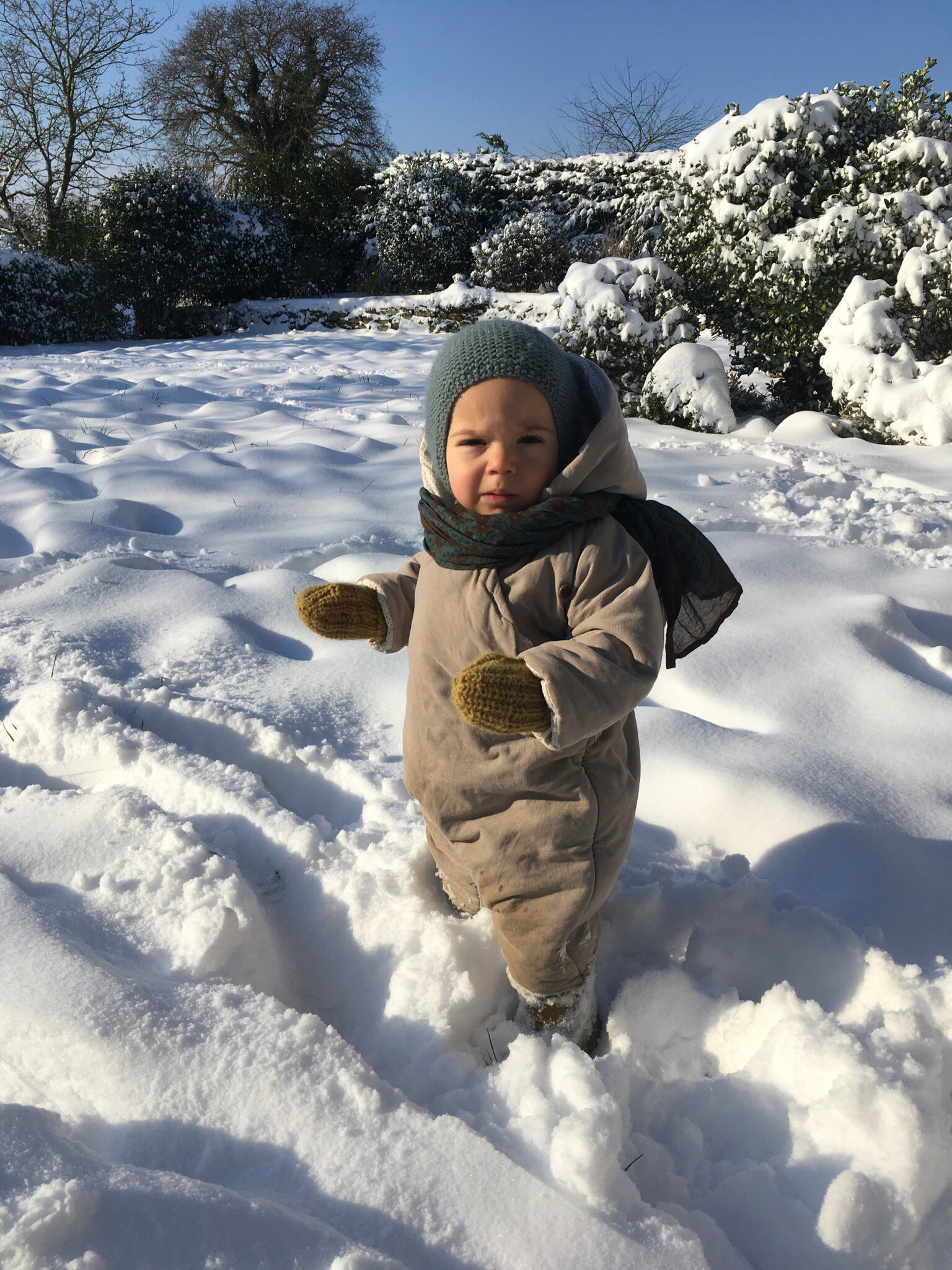 Et la joie évidemment de notre bébé devant cette étendue blanche…