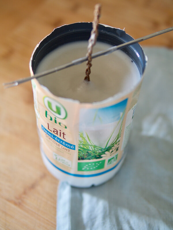 couler le cierge Pascal dans une bouteille de lait,