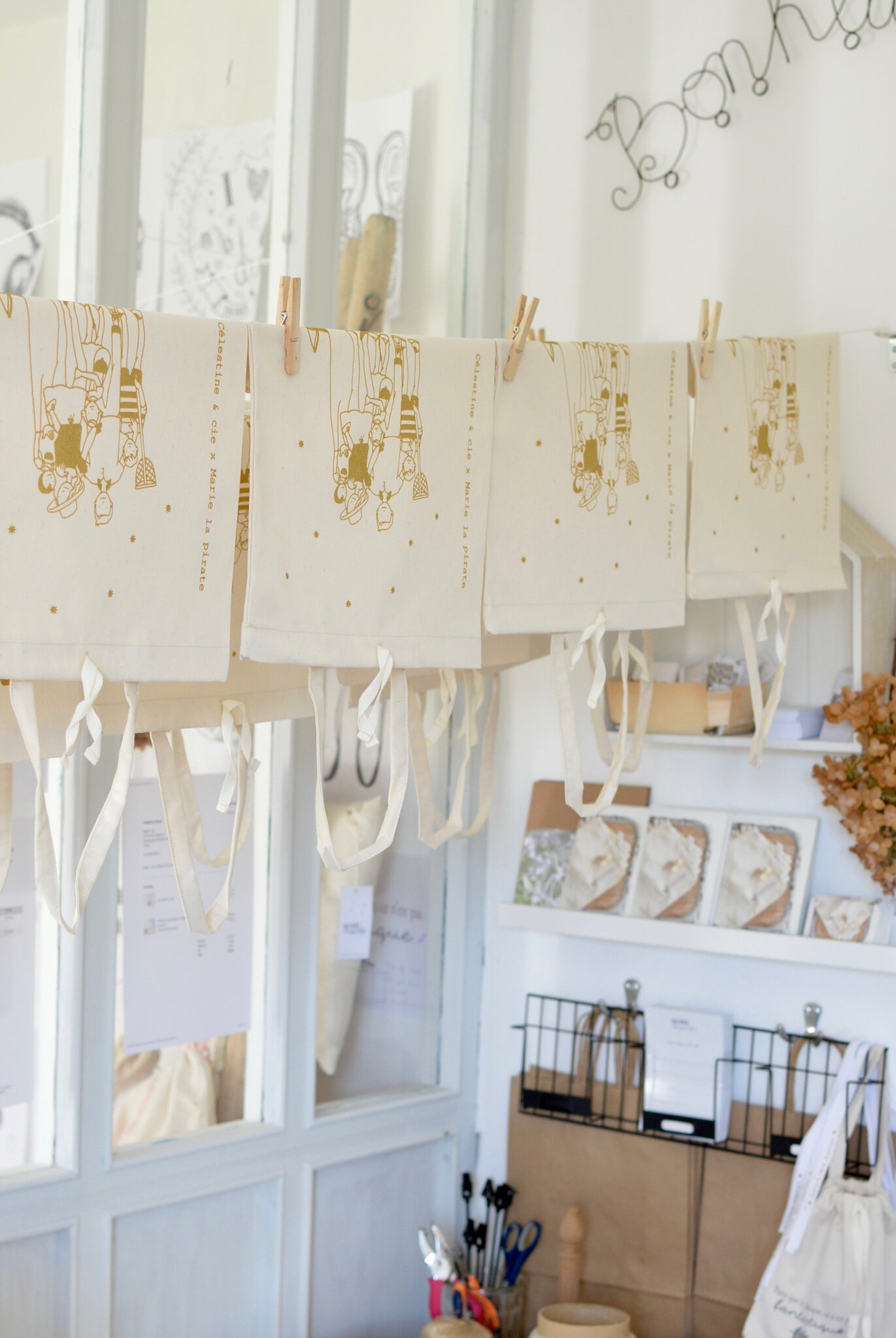 et tout accrocher si joliment pour que les pochettes sèchent!