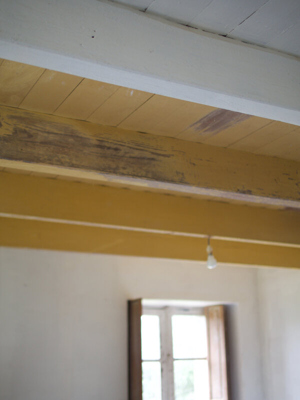 Toutes nos poutres repeintes en blanc dans notre maison de vacances vauclusiennes et c’est vrai que la luminosité dégagée change la pièce!