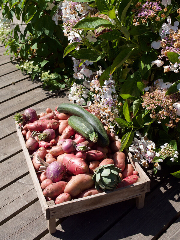 de nos paniers remplis de légumes du jardin