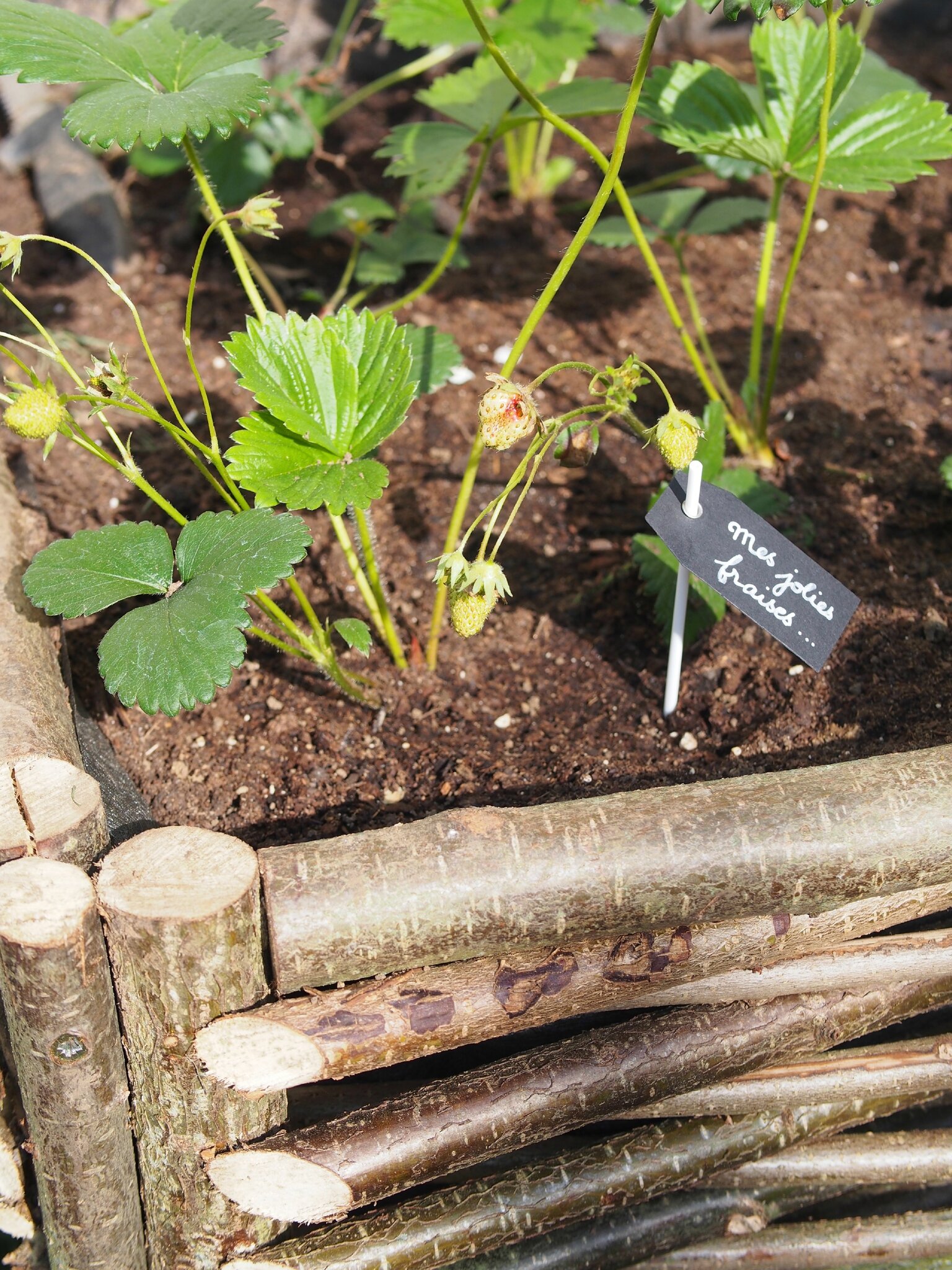 Votre carré potager est splendide et avec ce soleil, les fraises ne vont pas tarder à rougir.