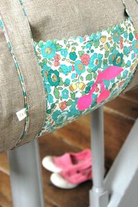 Très chouette ce sac polochon. Le croquet et les cerises en flex fluo lui donnent tout son charme. J’adore.