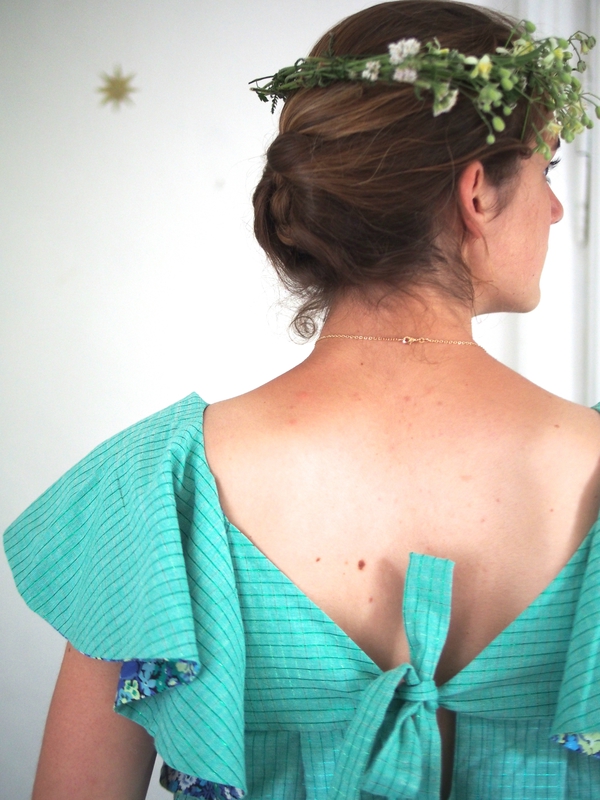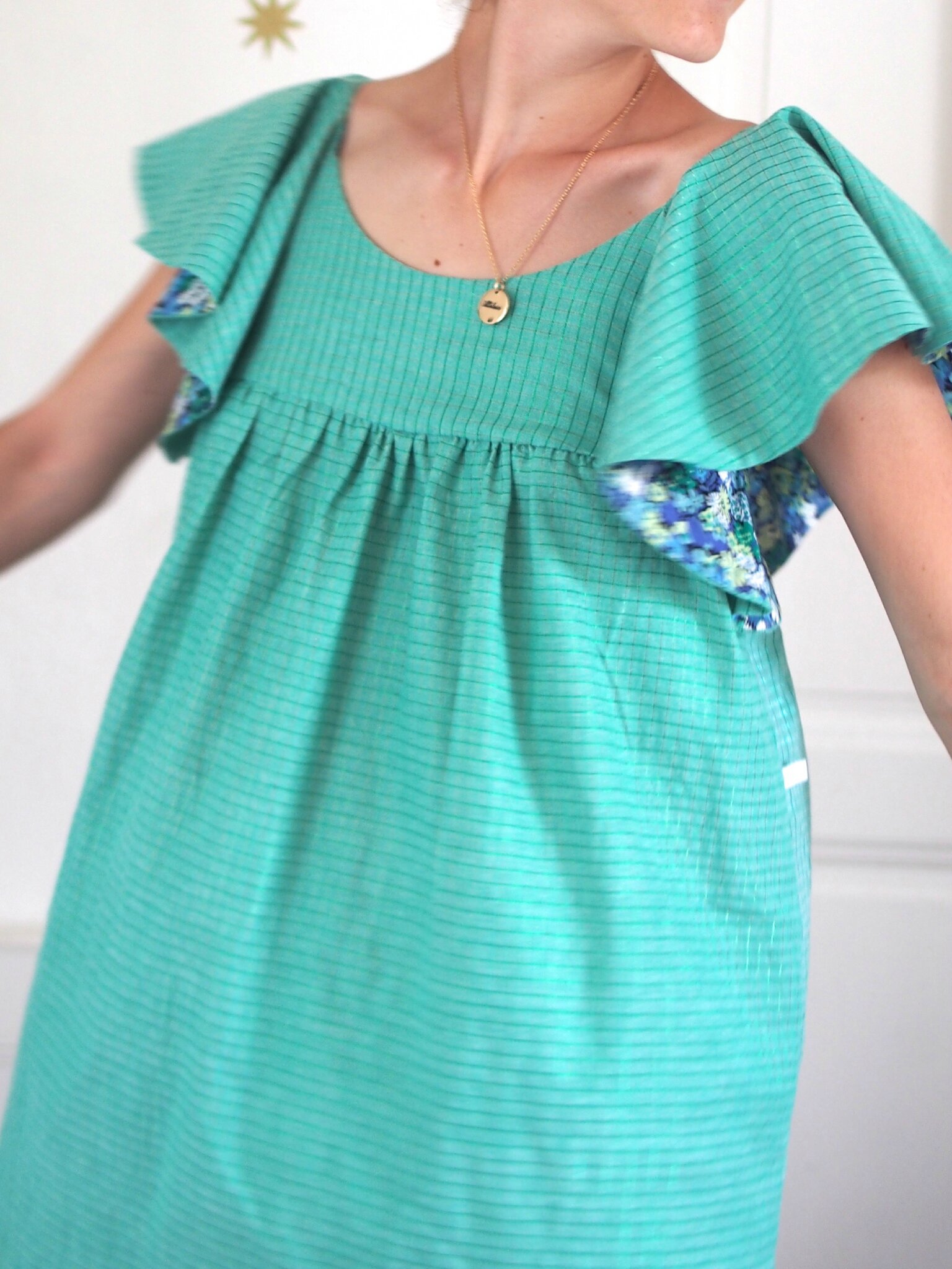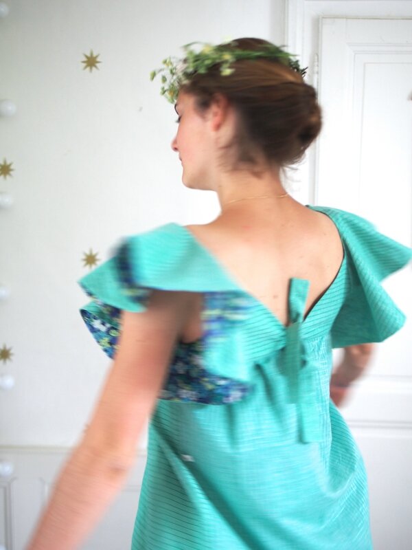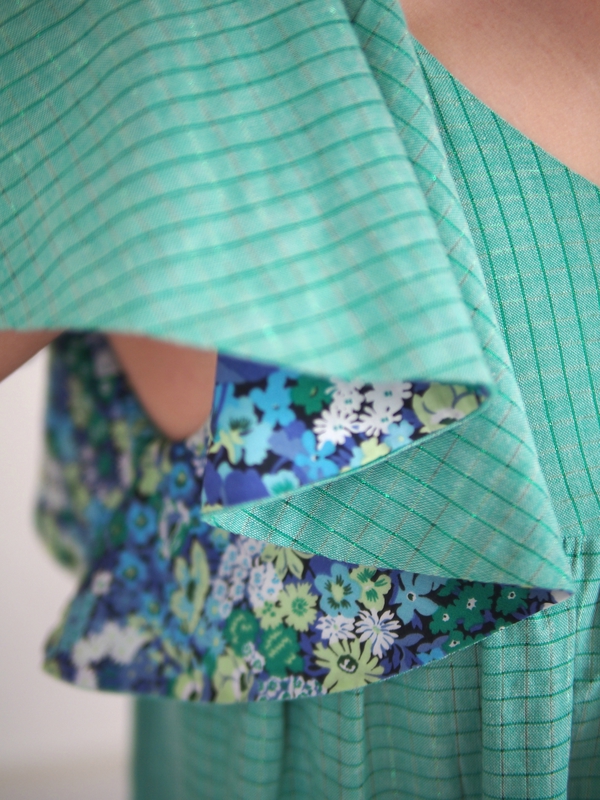 Très belle robe avec ce vert et ce Liberty parfaitement assorti . Le tout porte par un modèle charmant … Toi, V ?